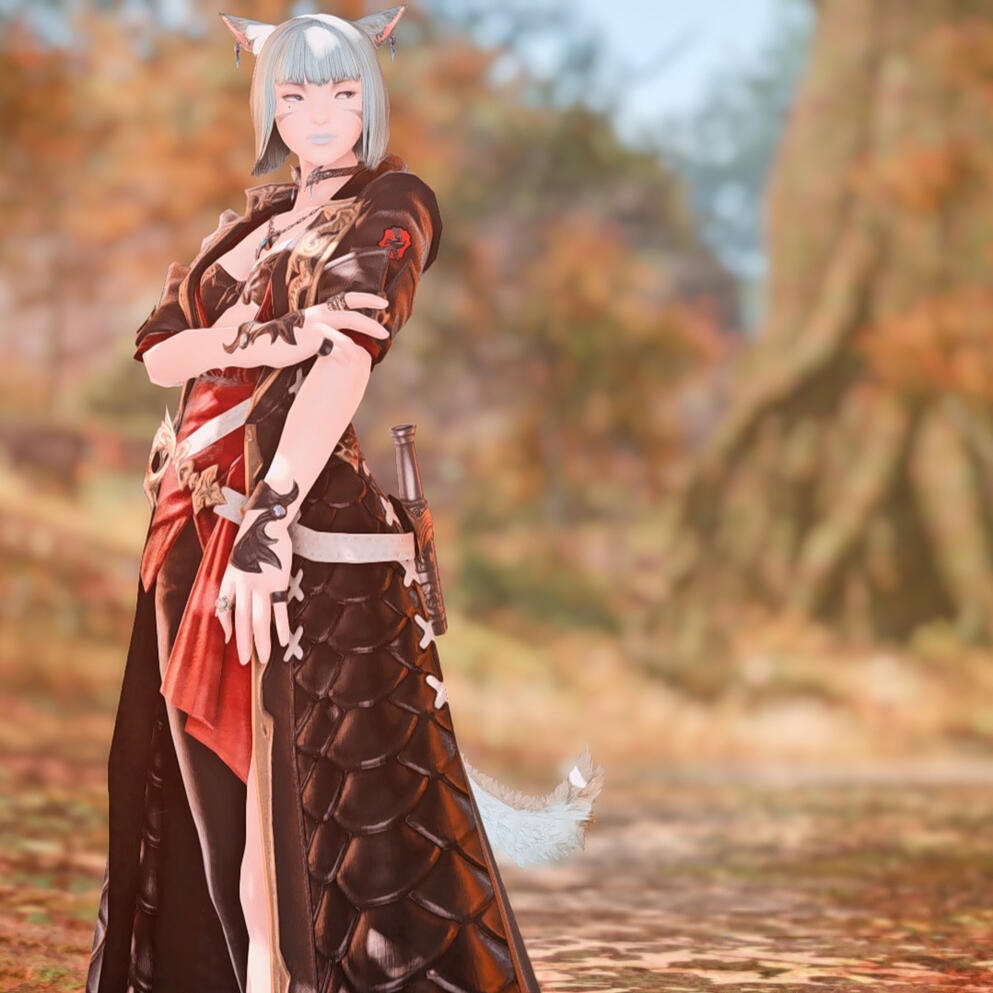 HistorySylvara was orphaned at a young age and has no memory of her original family or origins. She was found wandering aimlessly in a daze after the Calamity, no older than 10 years of age and to this day has no idea how she ended up where she was. With no memory of her past, and nothing to reference, even her age is just an approximate guess. A kind Elezen soldier took her in and with his wife raised her until the age of 16.Sylvara fortunately, wasn't alone in her unique and strange situation, she was found with her twin sister, Lynarra, however she never speaks of her, and questioning her about it is the surest way to alienate her in an instant. Anyone looking for details around who her sister was or what happened to her will find themselves running into the Immortal Flames, and their disapproval again and again. Redacted field reports, bold faced denials, and outright lies are the only thing one is likely to find. Whatever happened to her, it seems a very large conspiracy exists to cover it up, with Sylvara at the middle of it. The only detail known surrounding her is that she too shared the amnesia of their origins. It would take a great deal to get her to open up on the subject, however rumor has it Misaki Nakamura, her friend and employee knows the story and in fact was somehow involved with it.Sylvara still has a healthy relationship with her parents and loves them dearly, but when she turned 16 she had enough of the constant racism and prejudice she recieved from her Elezen peers in school. So she left Gridania to find her own kind, and eventually joined up with a small group of female Tribal Keepers living in the Shroud.There she learned a great deal about her people, how to hunt, and most importantly to her; who she really is inside. It was during her training that she started to realize she was experiencing romantic feelings for some of the other women of the tribe. Though acceptance was never a problem from her fellow Keepers, she had a lot of trouble accepting herself. Still, after a time she came to not only realize but accept those feelings as a part of her. Owing in no small part to the positive encouragement, and understanding of her fellow tribeswoman.Eventually her tribe fell apart when the leader was captured and charged with poaching. Unbeknownst to the rest of them, Liandrea had been poaching secretly to help support the tribe and when she was carted off by the Wood Wailers, the tribe dissolved and Sylvara returned home to Gridania.This has lead to a unique feature of the Miqo'te: She is bi-accented. Depending on her mood or who she's speaking to she may either speak with a distinctly Gridianian Elezen accent, or a more gruff Shroud Miqo'te accent.Recent